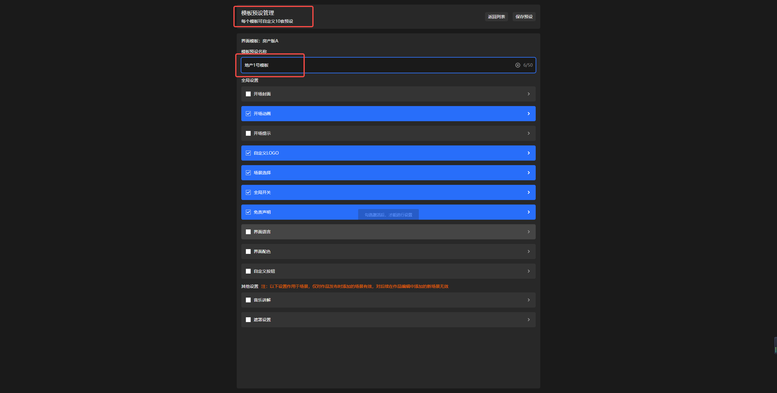 而本次更新推出的“模板预设”功能是在作品开始制作前完成各项全局内容设置,方便快捷。