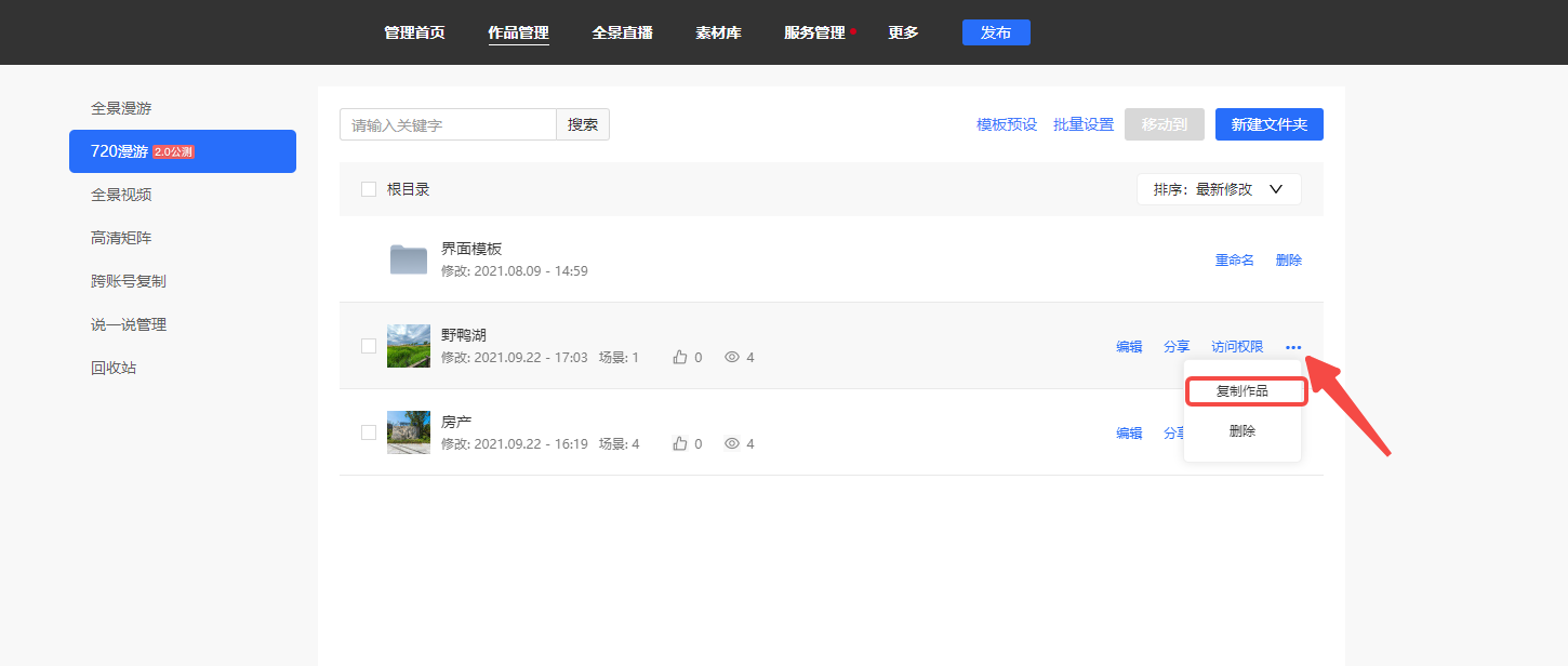 (1)720漫游(工具2.0)作品支持“复制作品”(专业版会员功能);