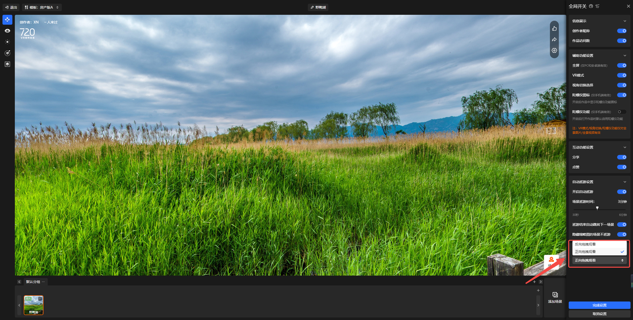 2、设置完成后,浏览者浏览720云站内任意一个作品的拖拽方向均为更改后的正(反)向。