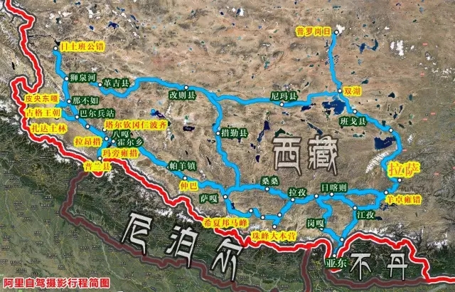嘿,别急,这次我们从拉萨开始一路向西,穿越有着“万山之祖,百川之源”之称的阿里地区,顺着阿里南线一直到最西的日土班公措,然后顺着北线改则-纳木错回到拉萨。