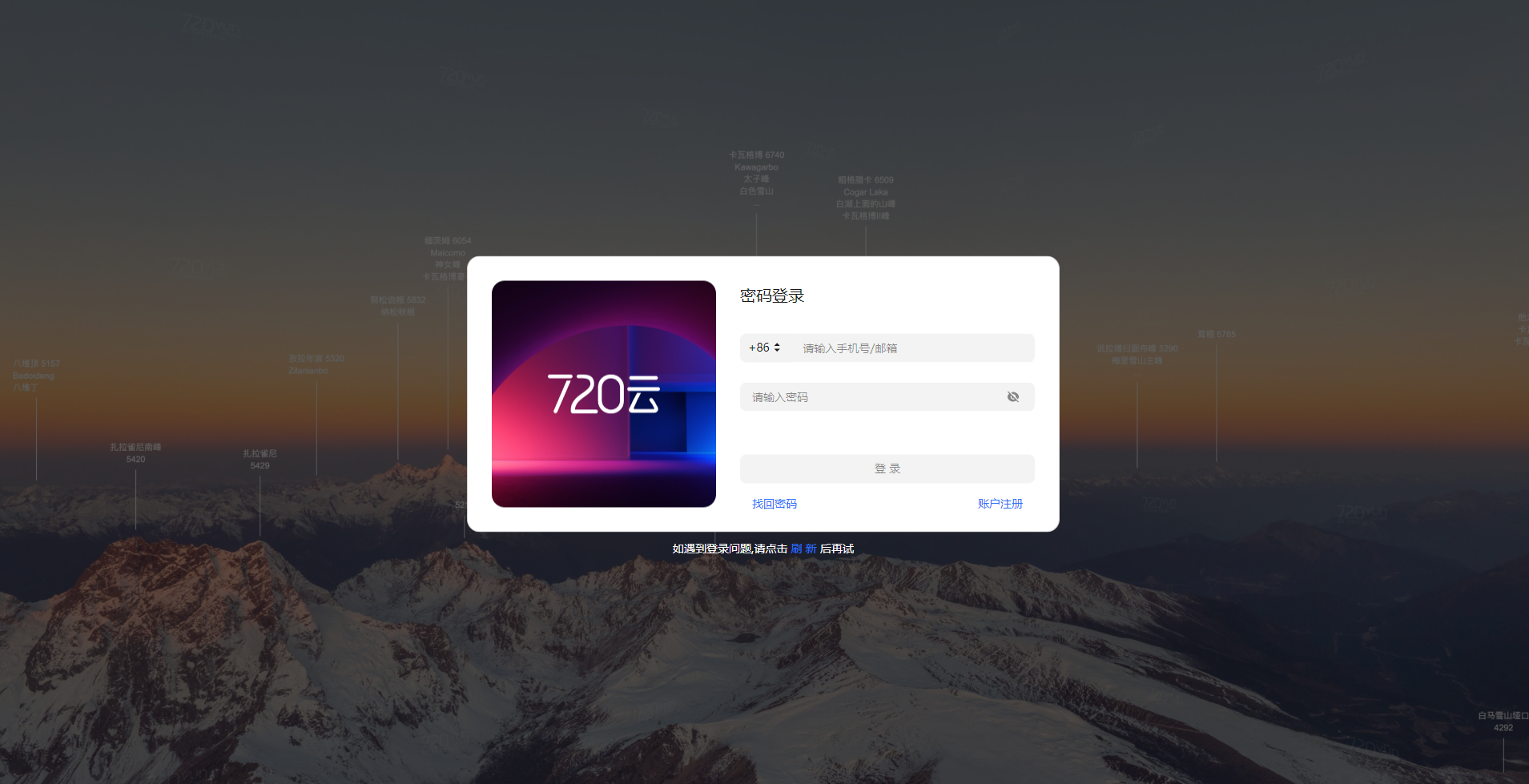 若忘记密码或注册新账号,需跳转到 720 云网页版进行找回或注册。