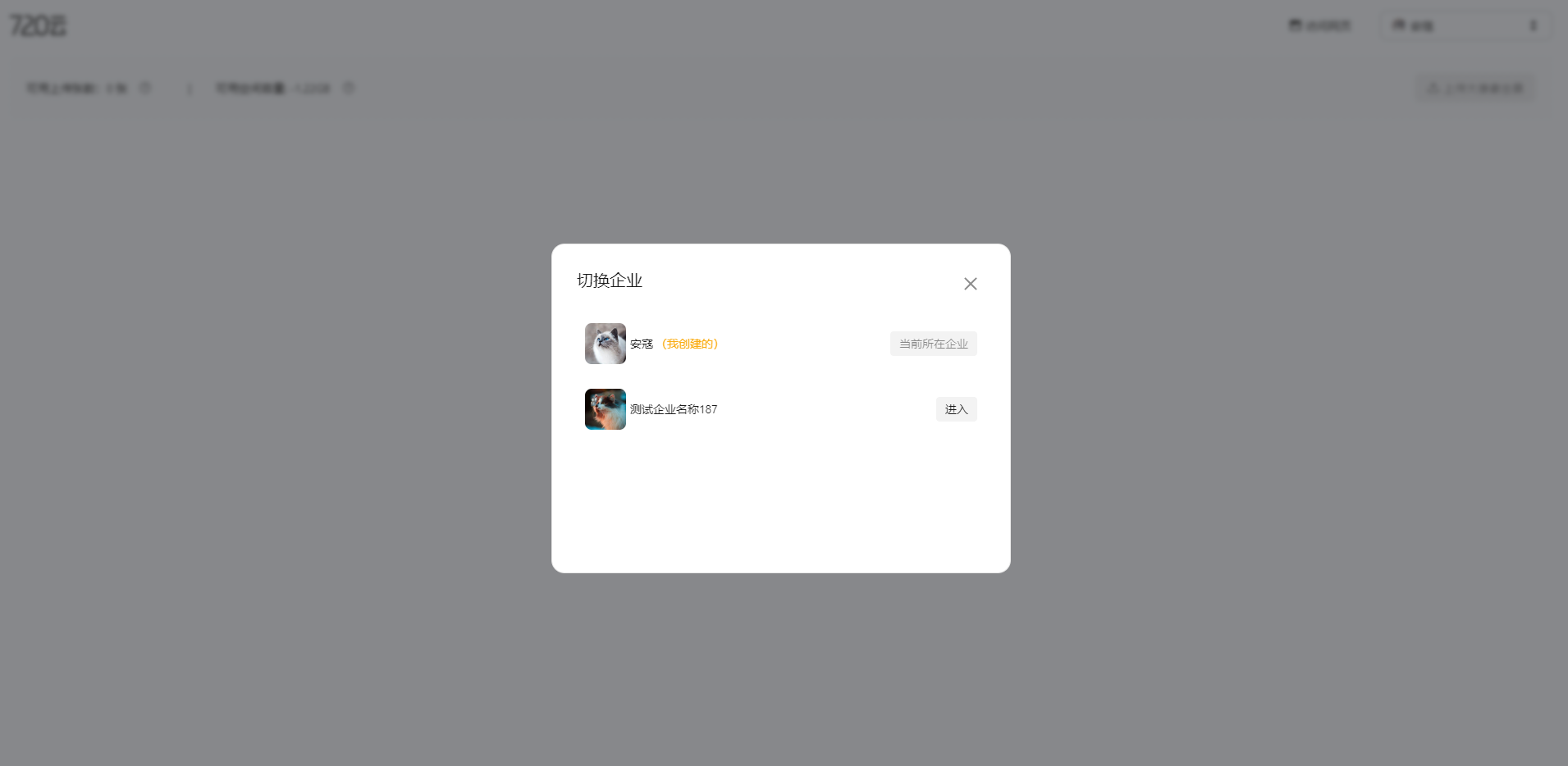 切换企业:登录进入客户端后,可切换到其他企业账号,以子账号身份上传大像素全景。