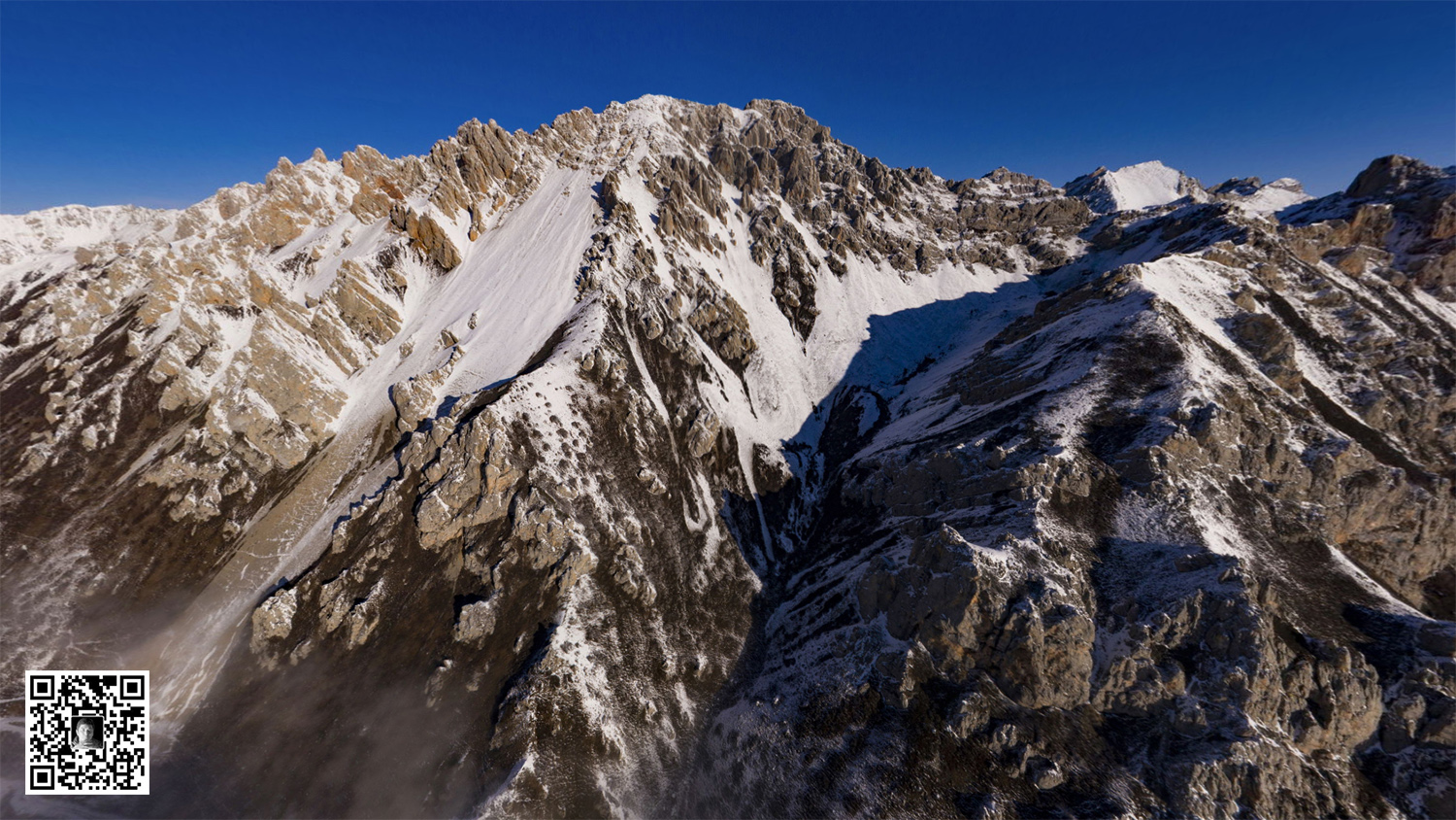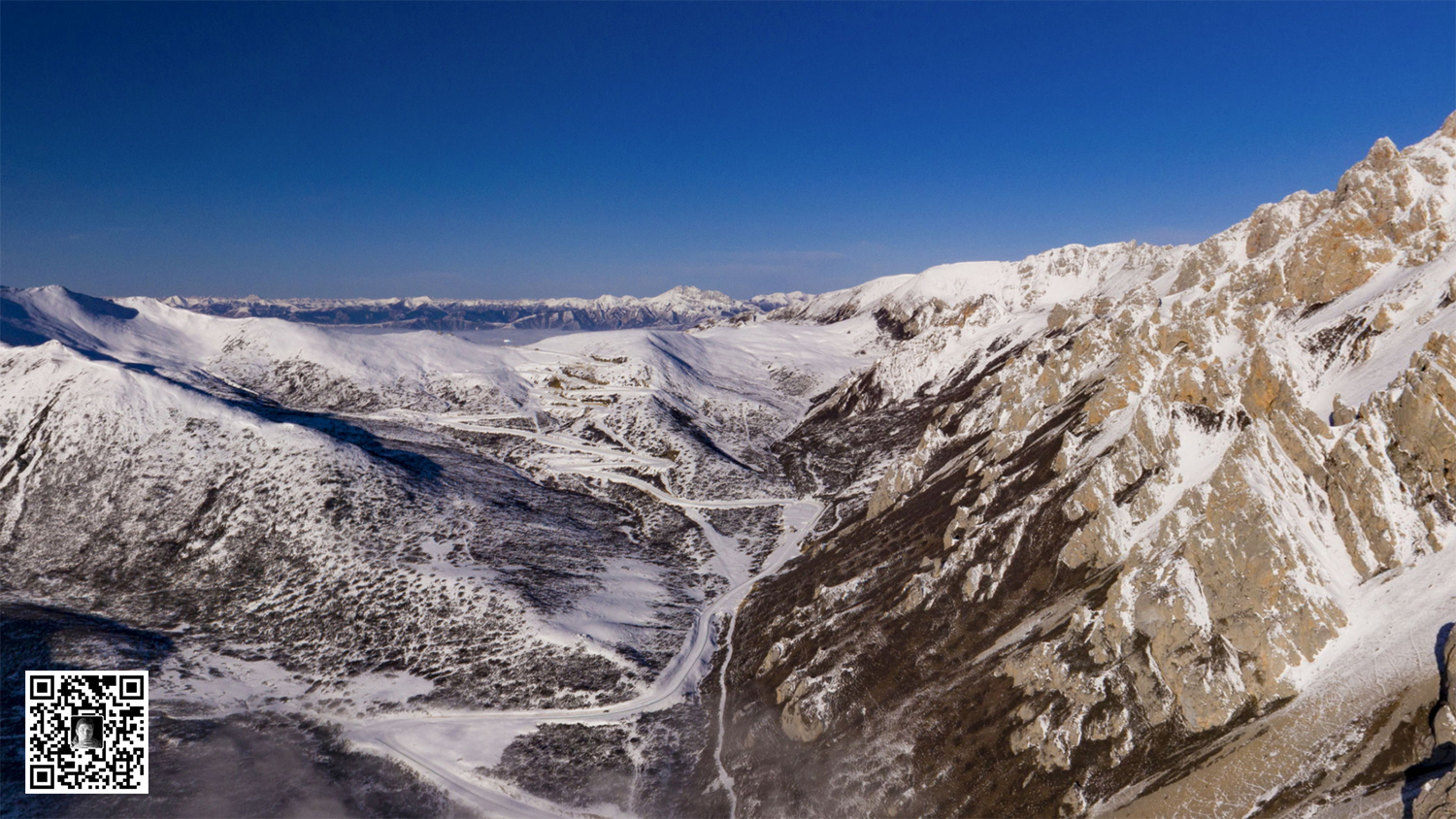 过高的海拔,使得山上有厚厚的积雪,蔚蓝的天空与洁白的积雪显得分外和谐。