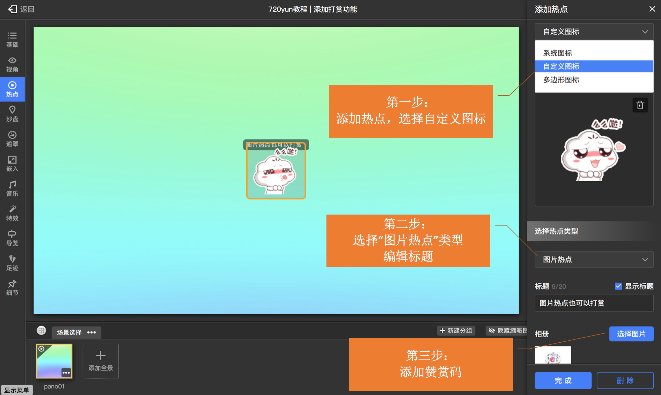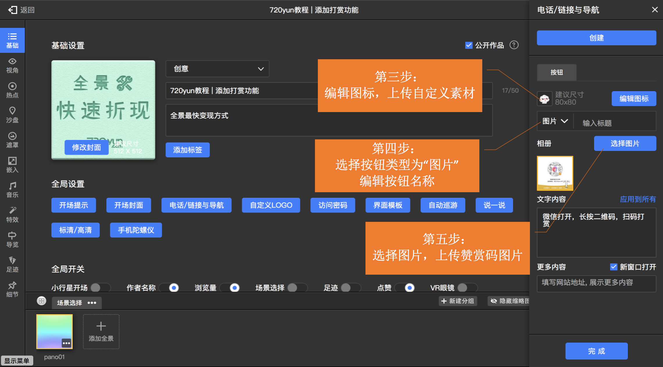 那么,下面小编将会介绍给你一种“全景最快变现方式” — 全景打赏功能,虽然钱可能会少一点,但是,积少成多嘛!