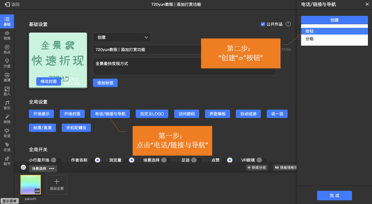 废话不多说,下面就是「全景打赏功能」的两种方式: