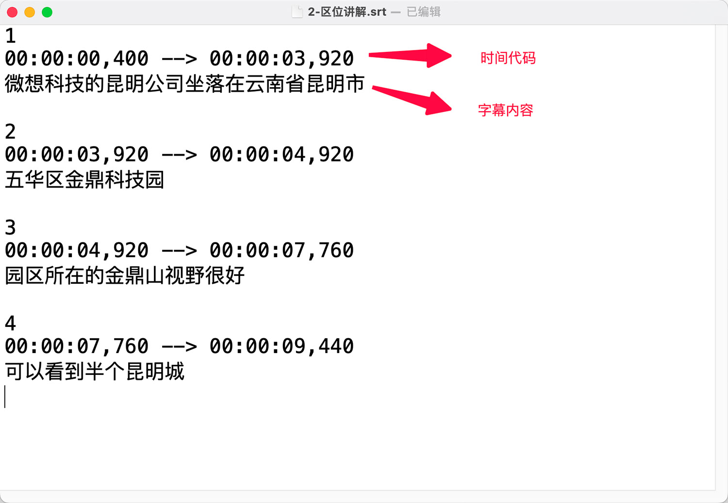 Macbook下使用系统自带软件“文本编辑”打开.SRT格式的字幕文件