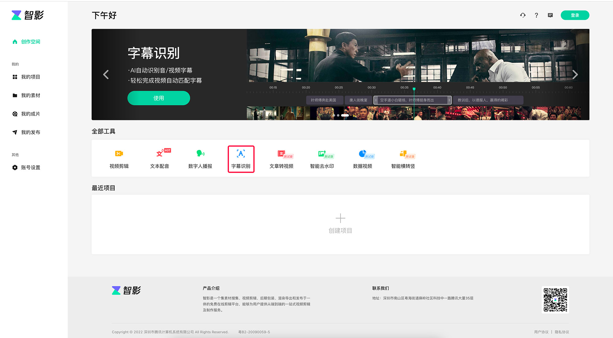 智影是一款在线的音/视频编辑软件,用户可以在线浏览器打开:https://zenvideo.qq.com/home