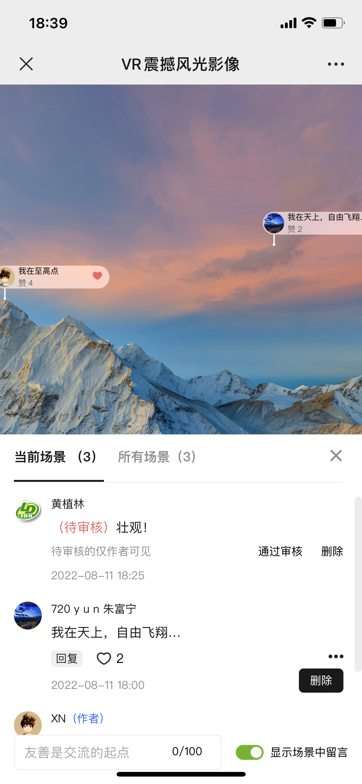 4、支持作品内“列表化”查看当前场景/整个作品的留言及回复内容