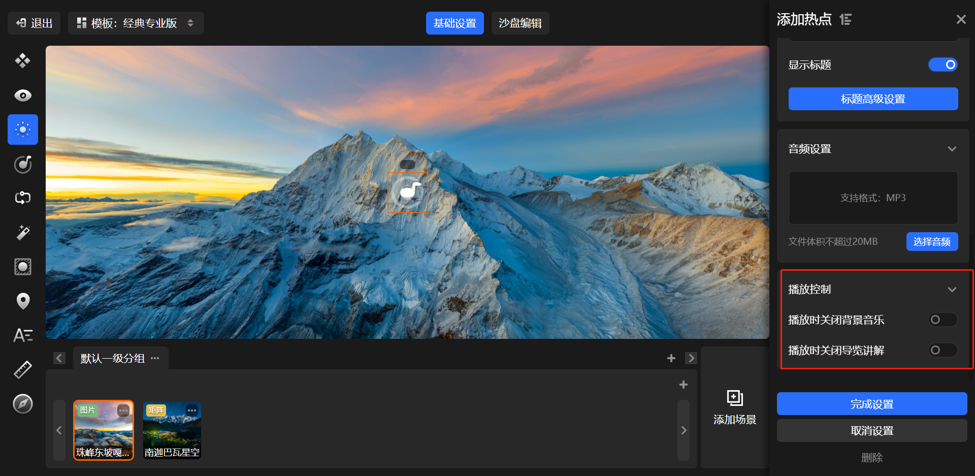 自定义按钮-音频热点支持播放时暂停背景音乐/导览讲解。