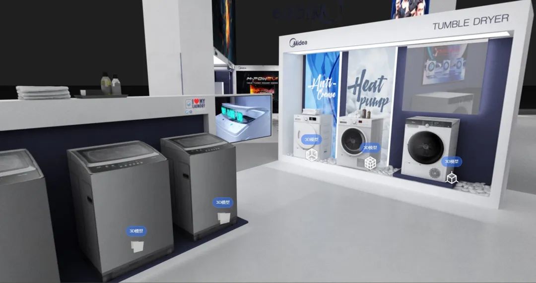 如果线上展厅内的大部分展品/产品都能展示出3D模型,这将会极大程度上提升VR全景漫游的内容丰富度。以往的线上展会,展品停留在用平面照片或逐帧环物展示,不利于观众全方位仔细查看。