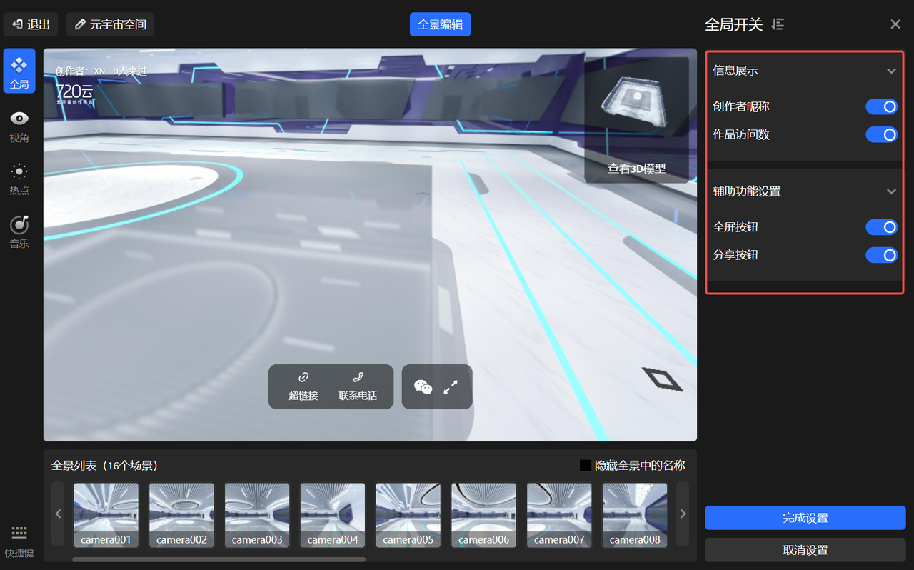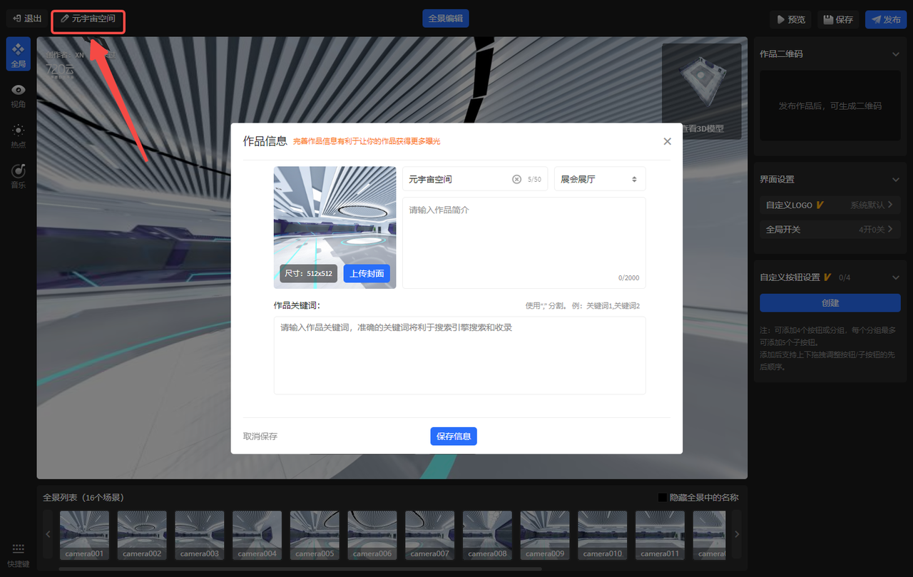 3D空间漫游作品编辑页-全局设置-作品信息设置