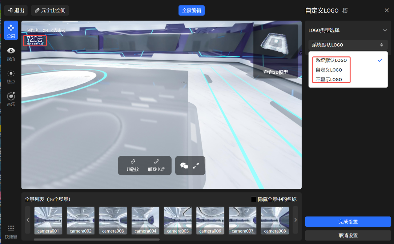 3D空间漫游作品编辑页-全局设置-自定义LOGO-1