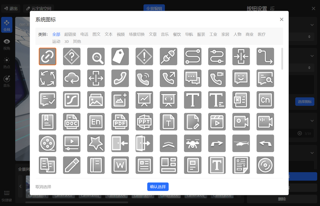 3D空间漫游作品编辑页-全局设置-按钮图标