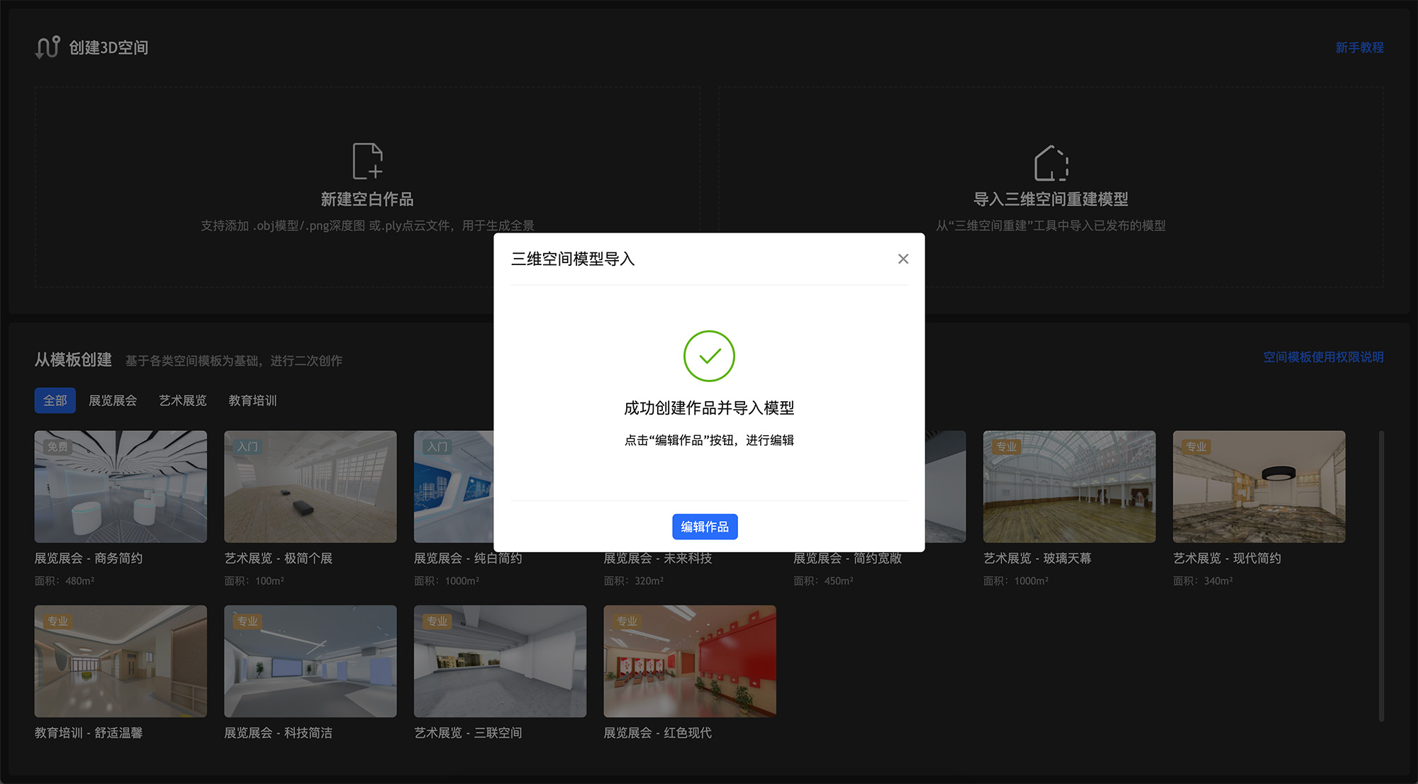 1. 三维空间重建作品导入3D空间漫游功能上线