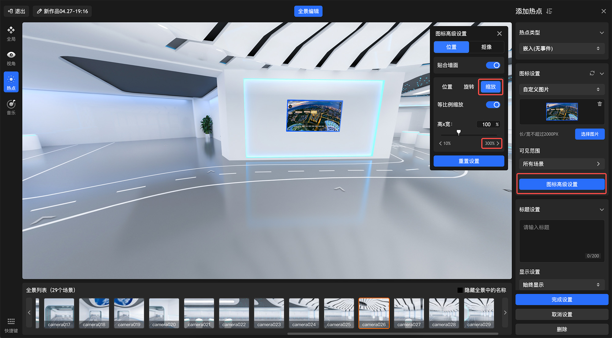 热点-图标-高级设置中,热点缩放倍数最大值由之前的200%扩大到300%,满足用户更灵活的缩放调整。