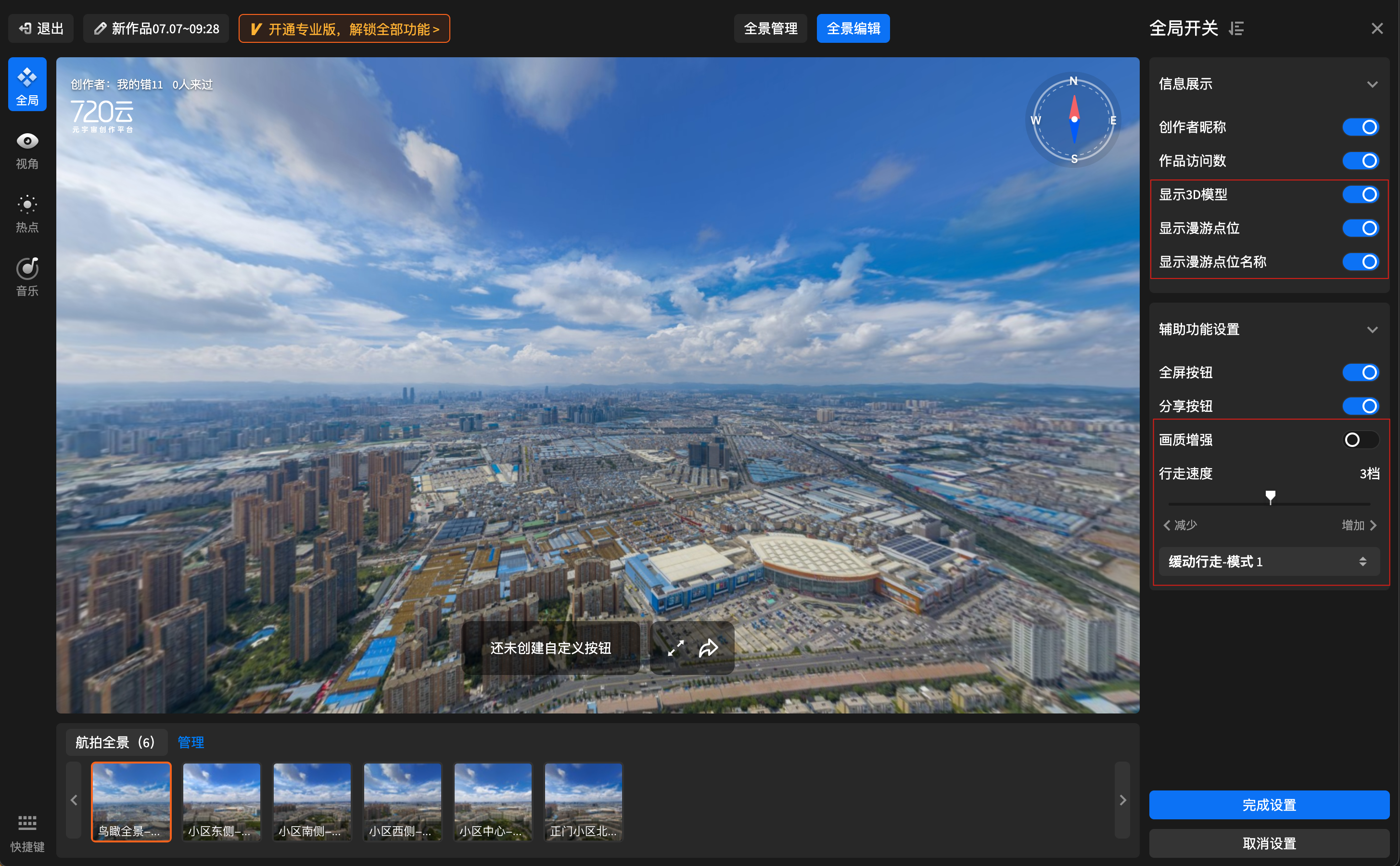 4. 在全景编辑 - 全局设置中新增多项功能,包括: