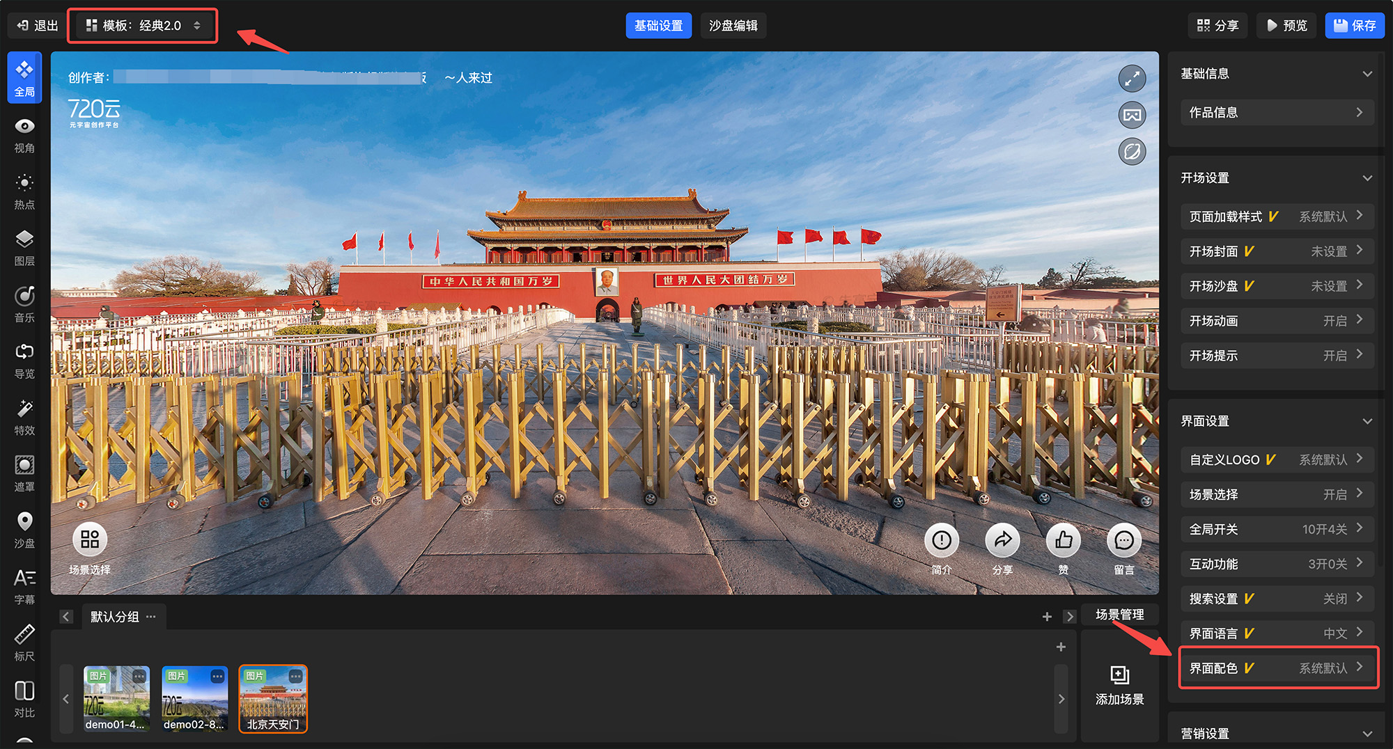 720漫游编辑器-全局设置-界面配色