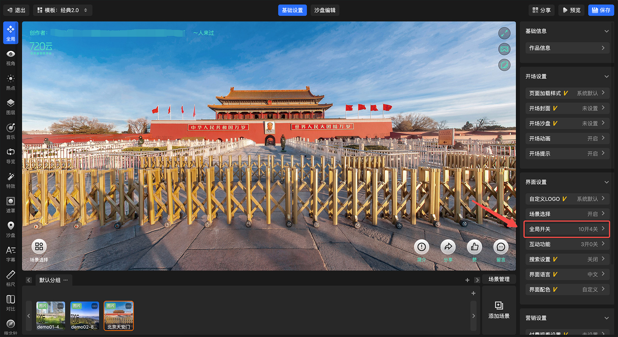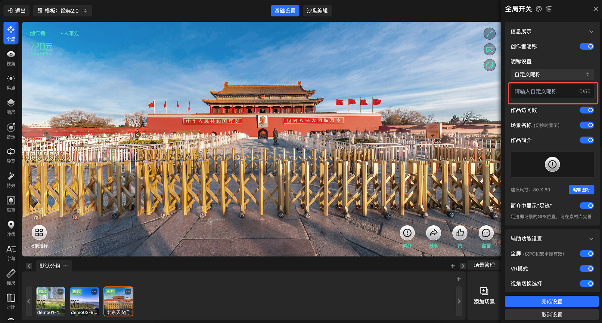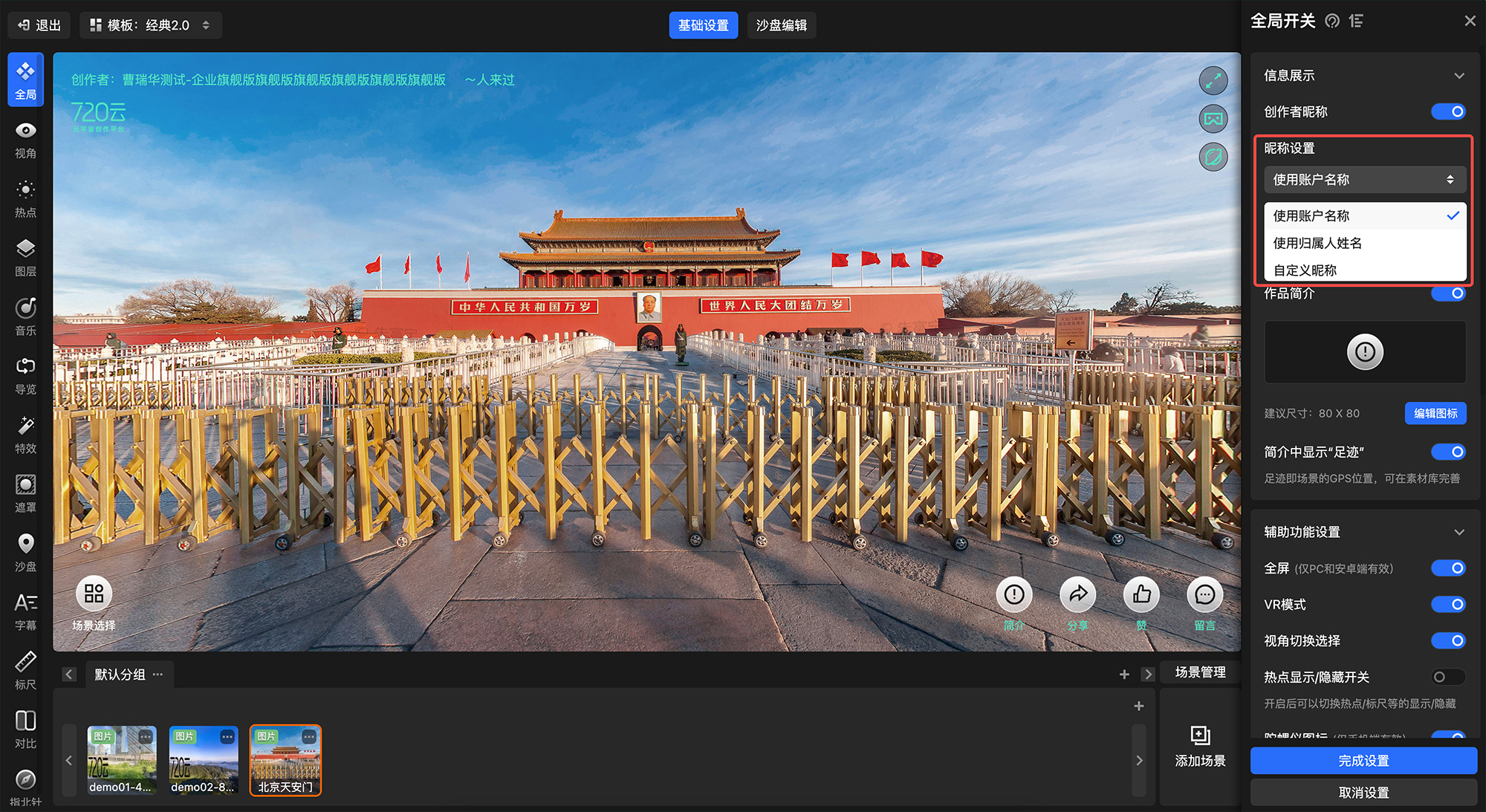 720漫游编辑器-全局设置-全局开关-用户昵称