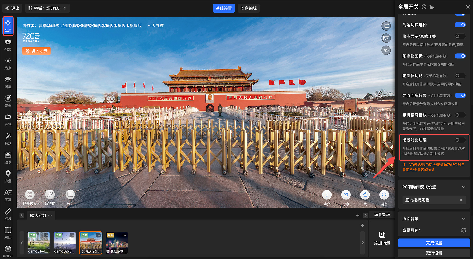 720漫游编辑器-全局设置-全局开关-场景对比功能