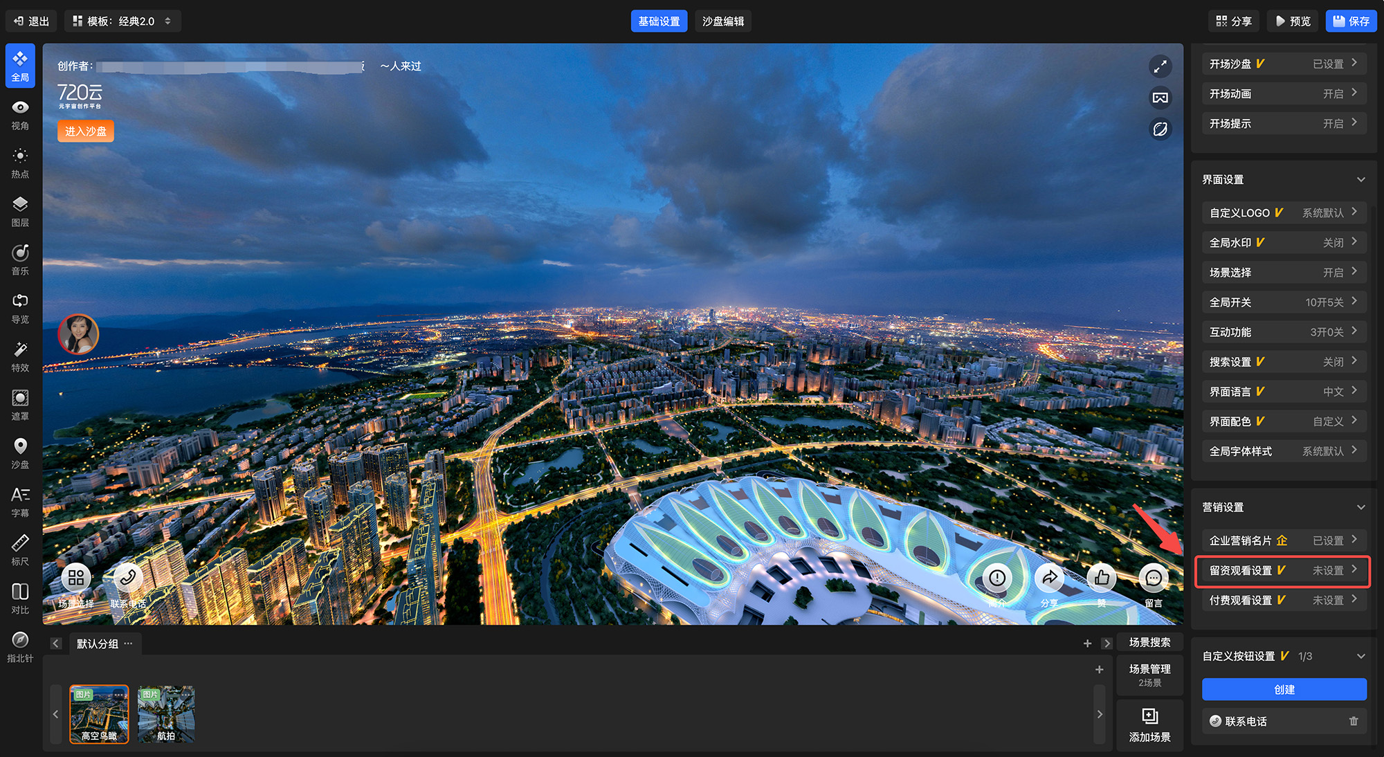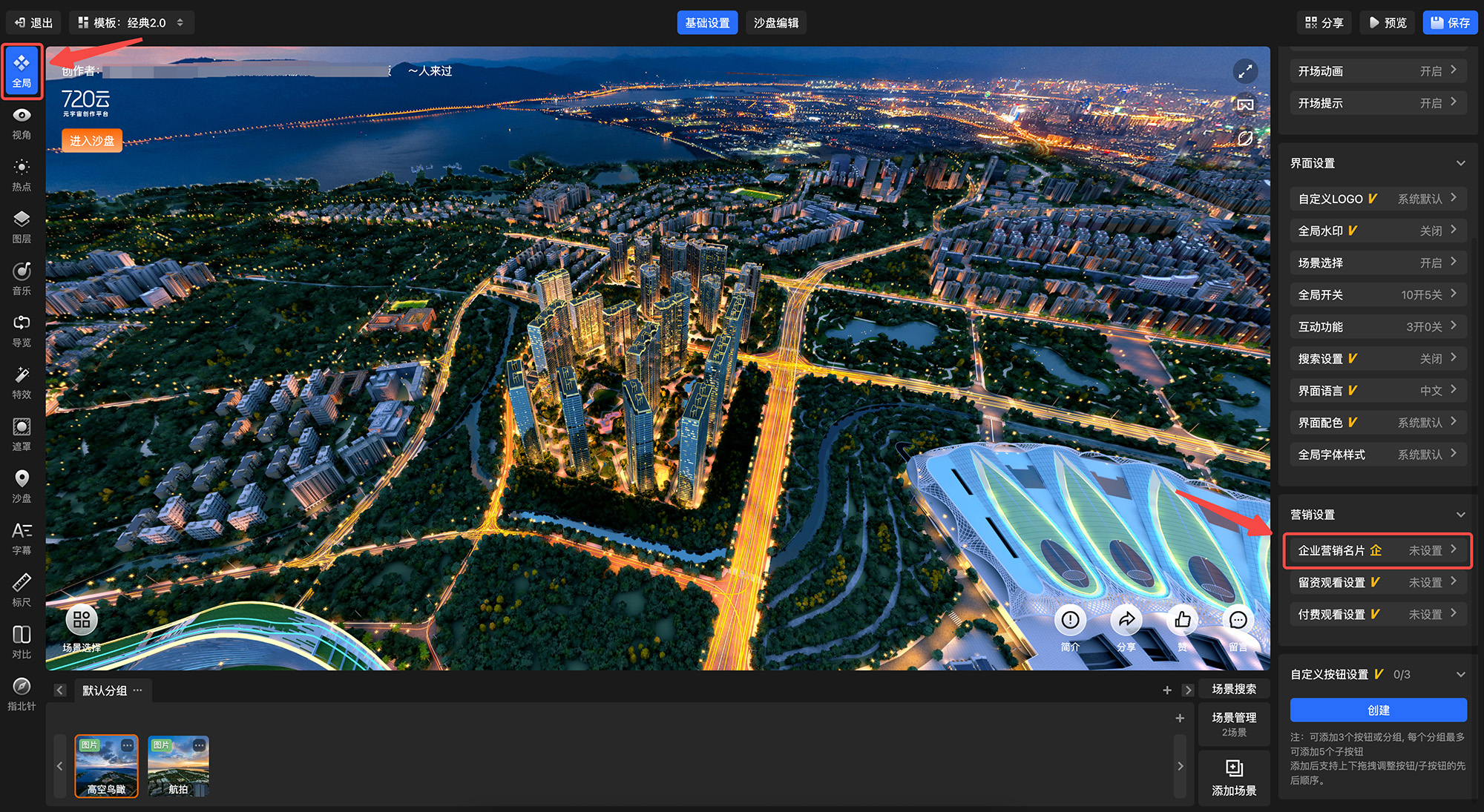 720漫游编辑器-全局设置-企业营销名片-名片样式