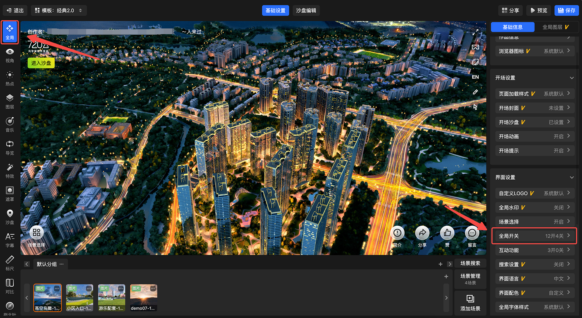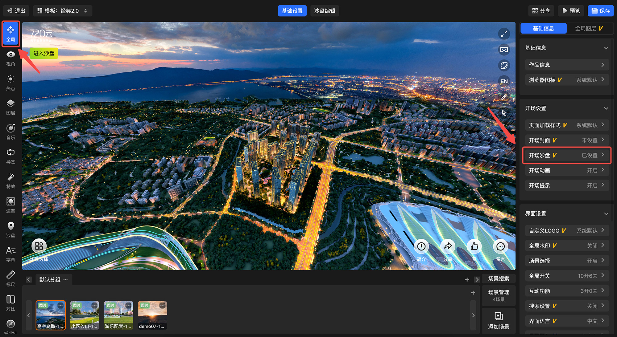 720漫游编辑器-全局设置-开场沙盘