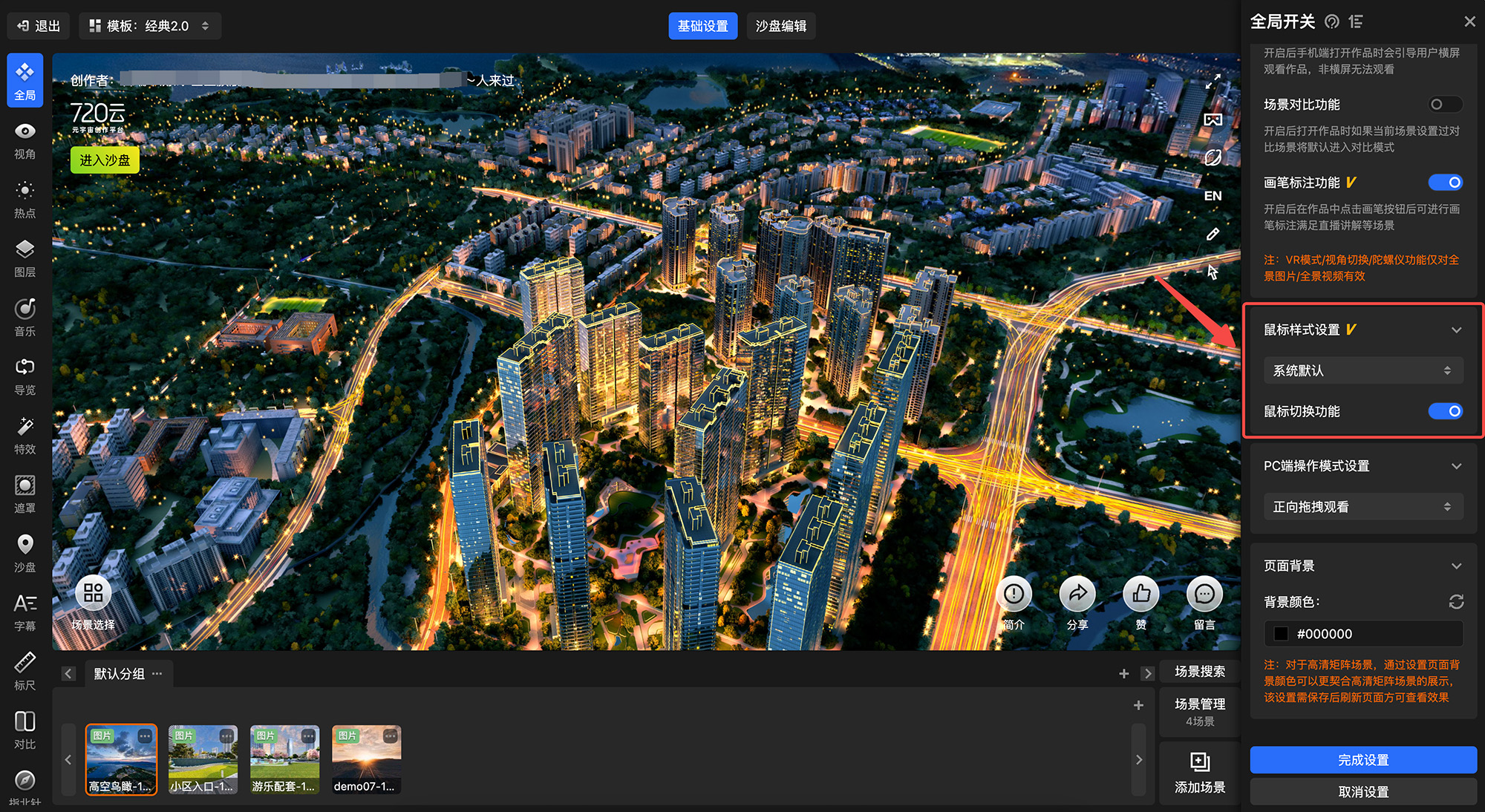 720漫游编辑器-全局设置-全局开关-鼠标样式设置