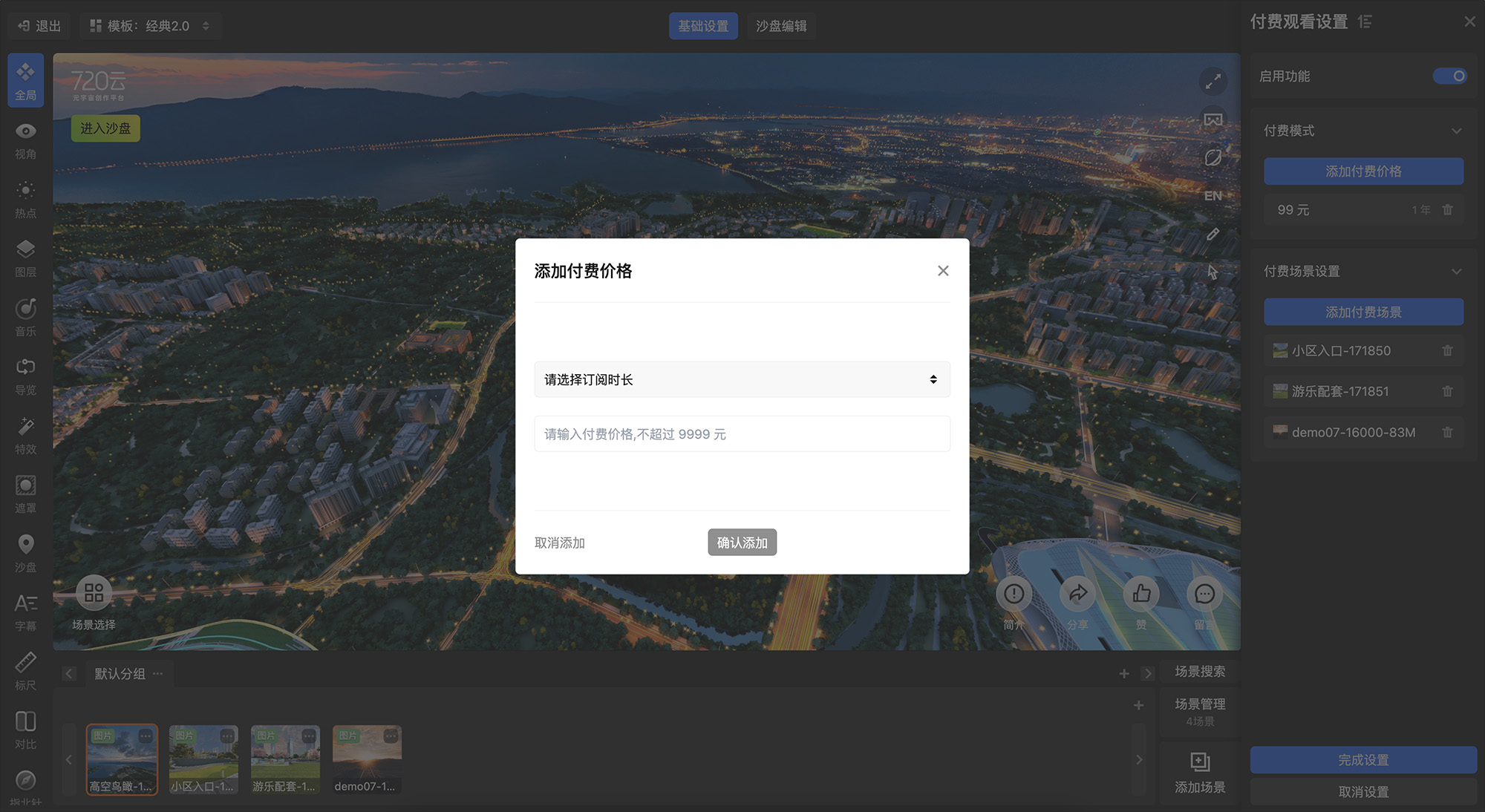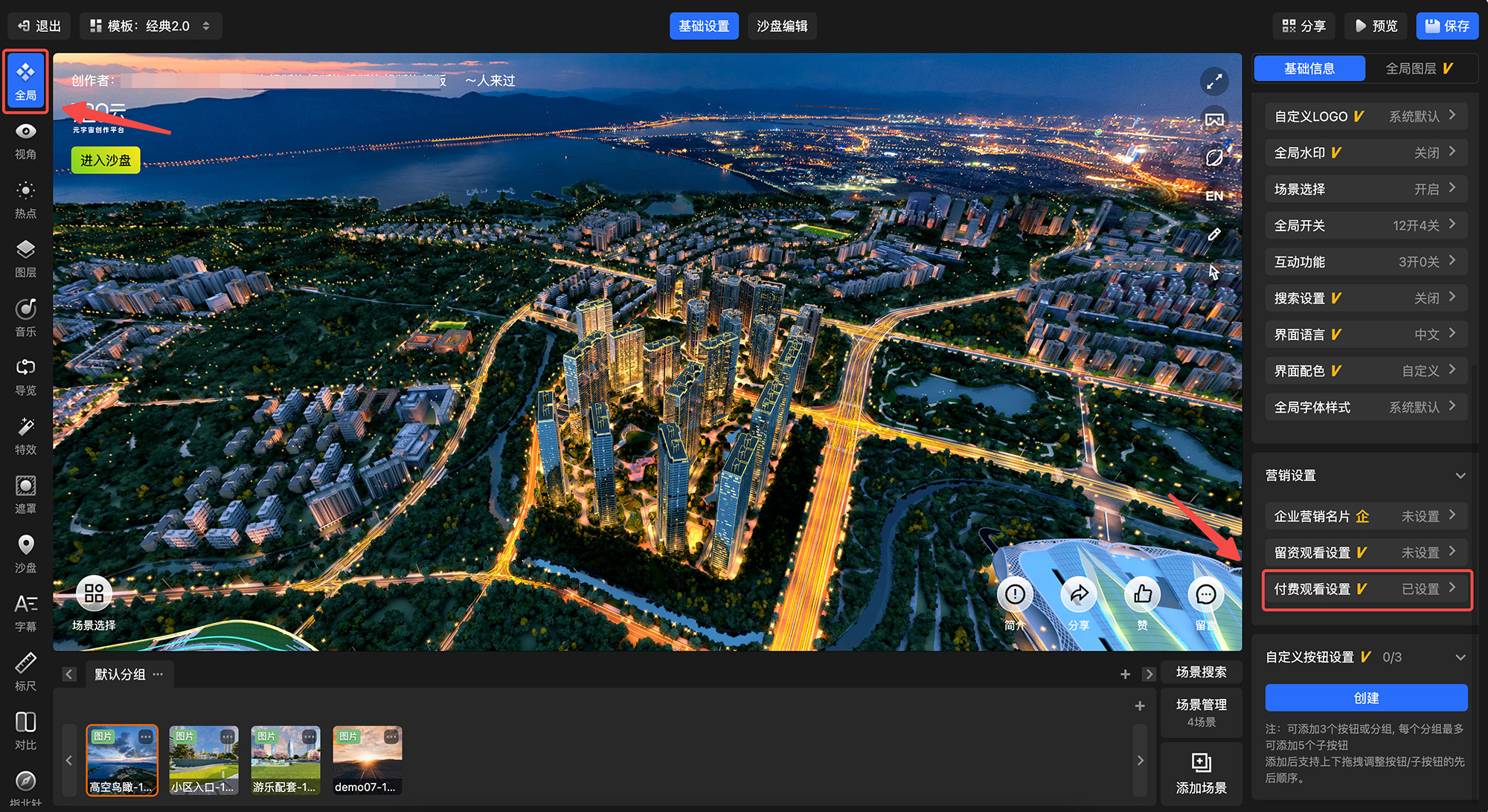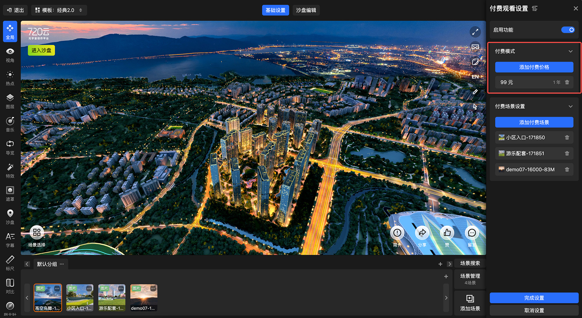 720漫游编辑器-全局设置-营销设置-付费观看设置