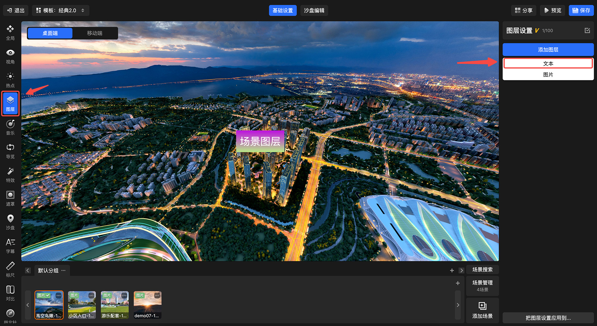1. 新增【文本图层】支持,让场景内的文字信息展示更灵活;
