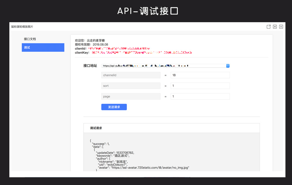 2、API 接口文档中,新增调试页面: