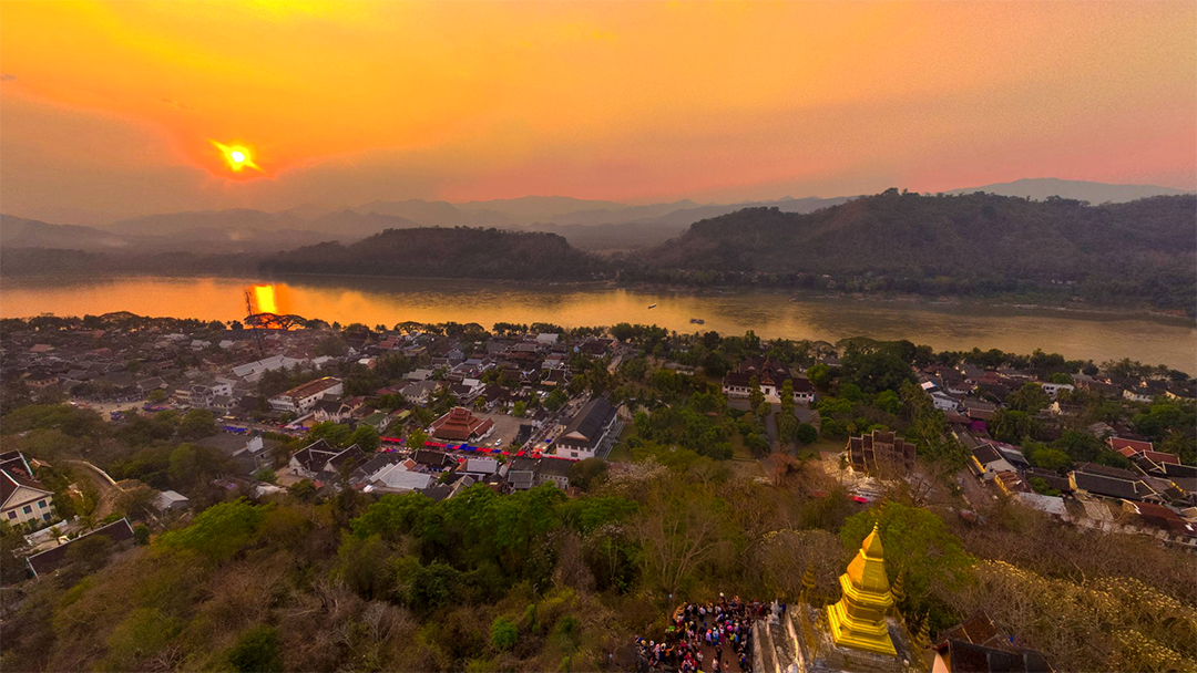 328级台阶拾级而上,寻拜佛祖传法到此时留下的足印,在琅勃拉邦的制高点,俯瞰椰城风貌,坐在斑驳坲塔下的台阶,观赏湄公河美景。