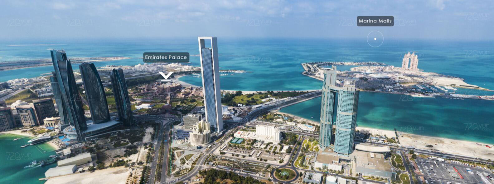 还有现代化的阿提哈德塔(Eithad Tower,下图左的5幢摩天大楼)和购物中心(Marina Malls,图中右侧标识处)。