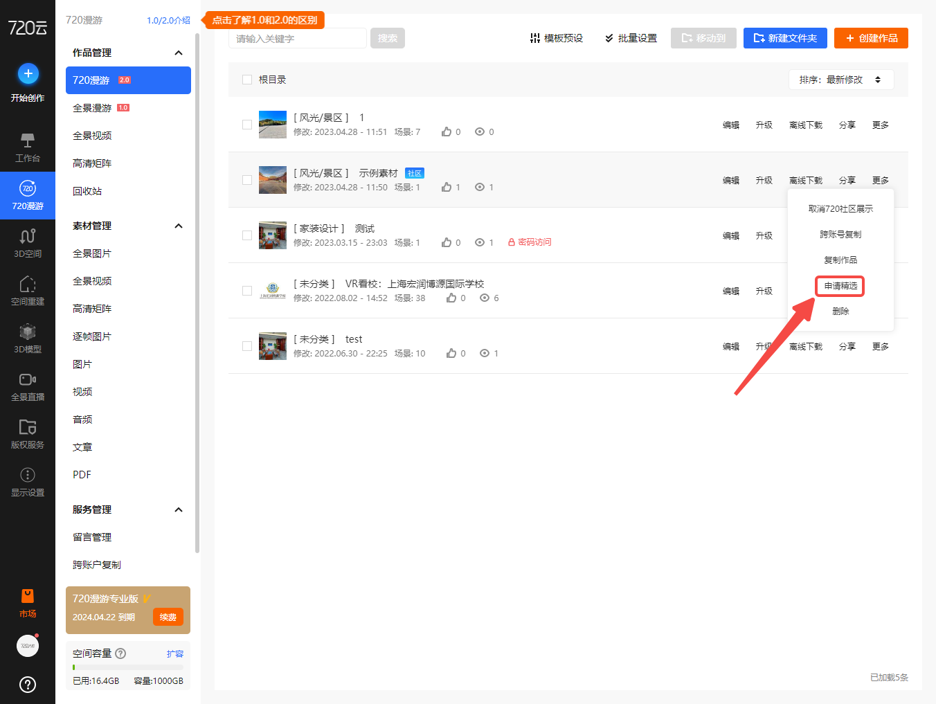 用户可登陆账号进入用户工作台,在“作品列表”-“...”处进行加精。(无需在此文留言,加精更快捷)