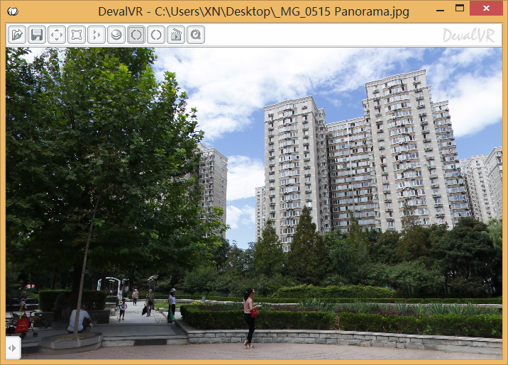 使用DevalVR播放器或者上传720yun.com即可观看不同于平面照片的360度全景照片。
