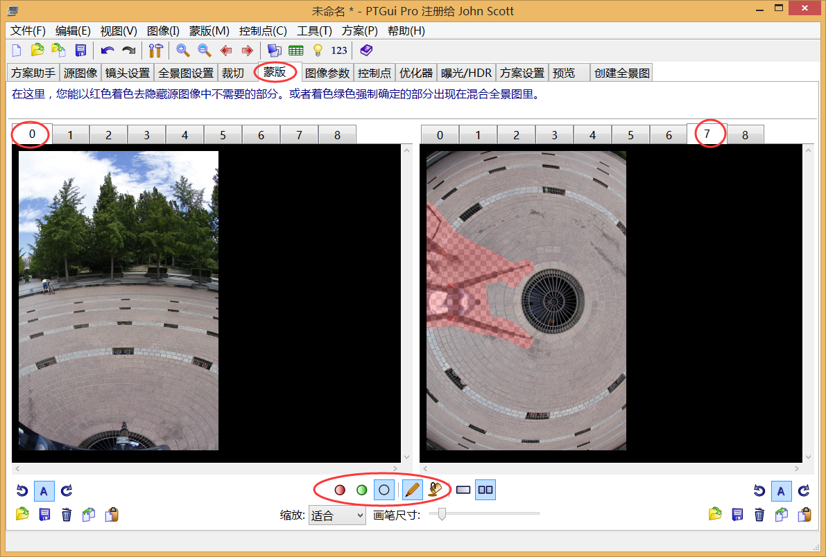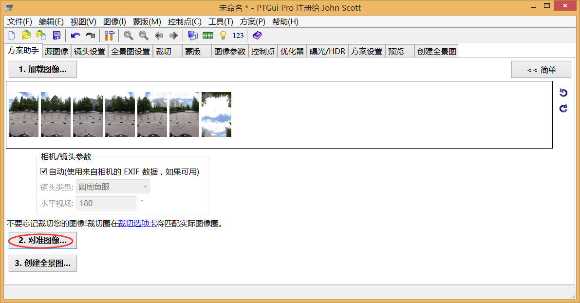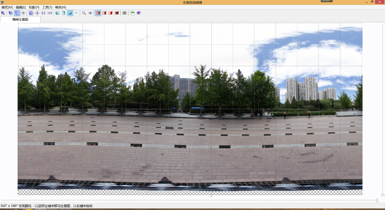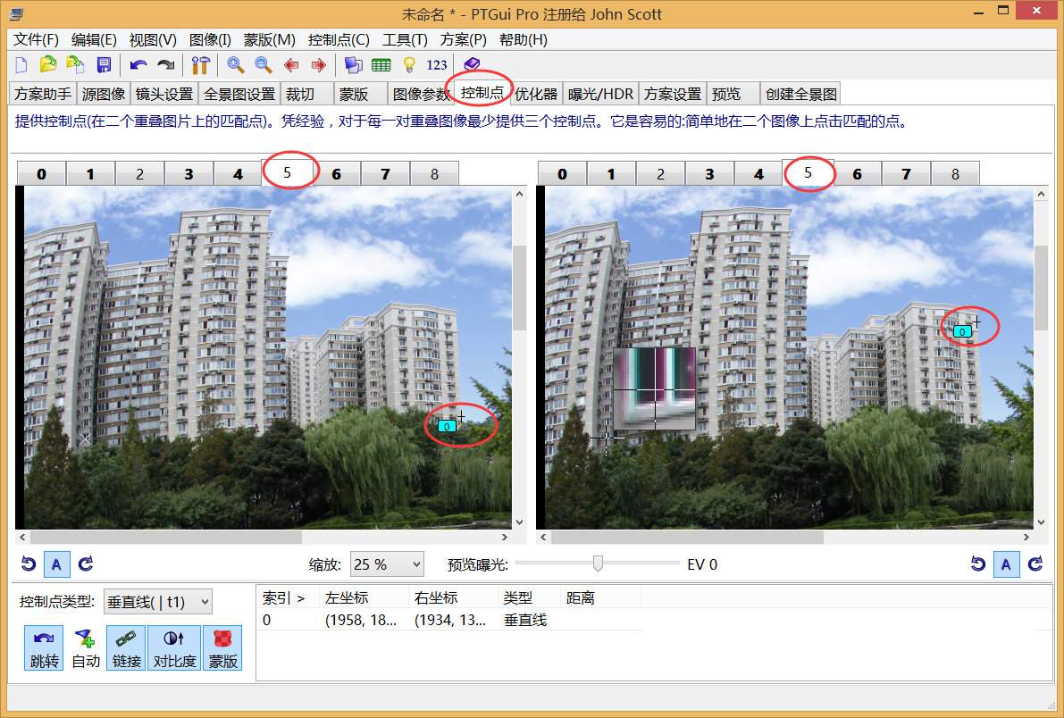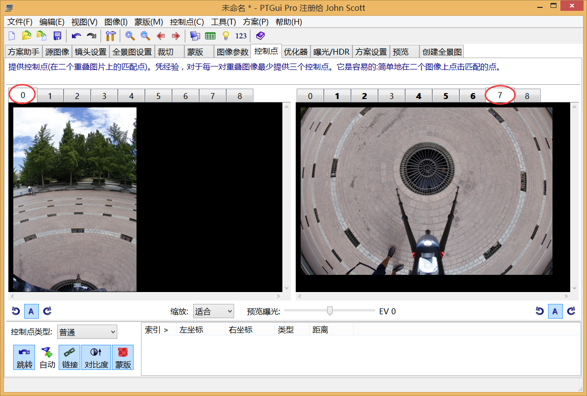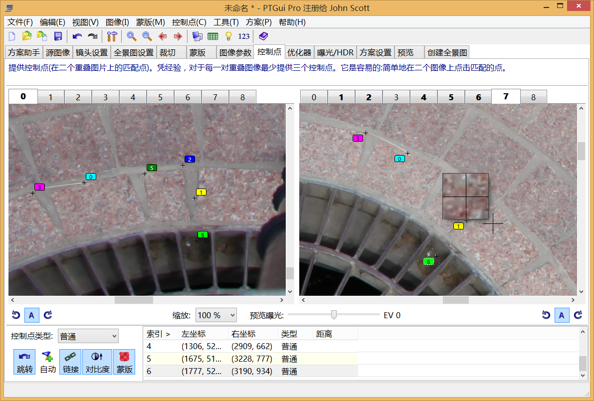 第二步:点选对准图像,软件自动进行拼接,如果前期拍摄没有问题的话,可得到一张不包含地面的全景照片。