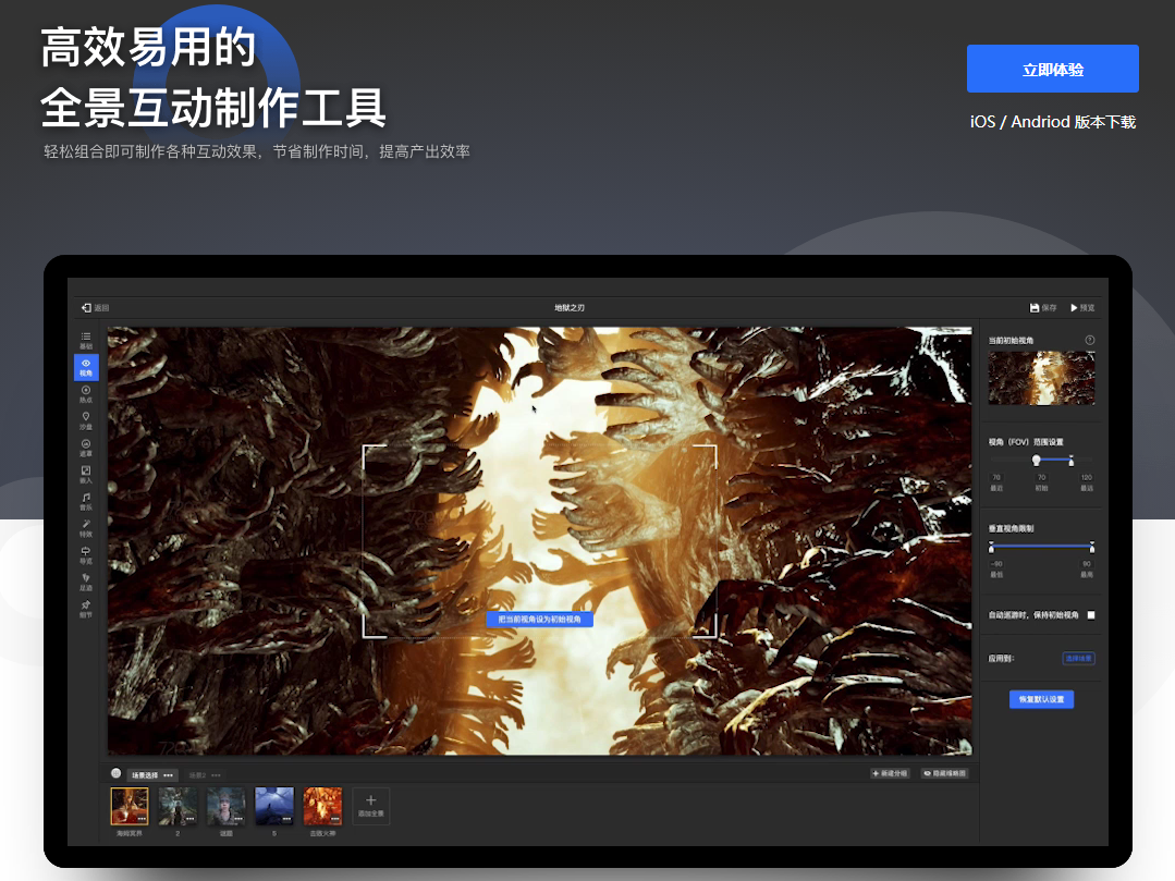 720云针对不同的用户场景,开发了简单快捷的专业全景制作工具,为新手摄影师和专业摄影师快速实现全景商业化功能提供了强有力的保障。体验地址:720yun.com