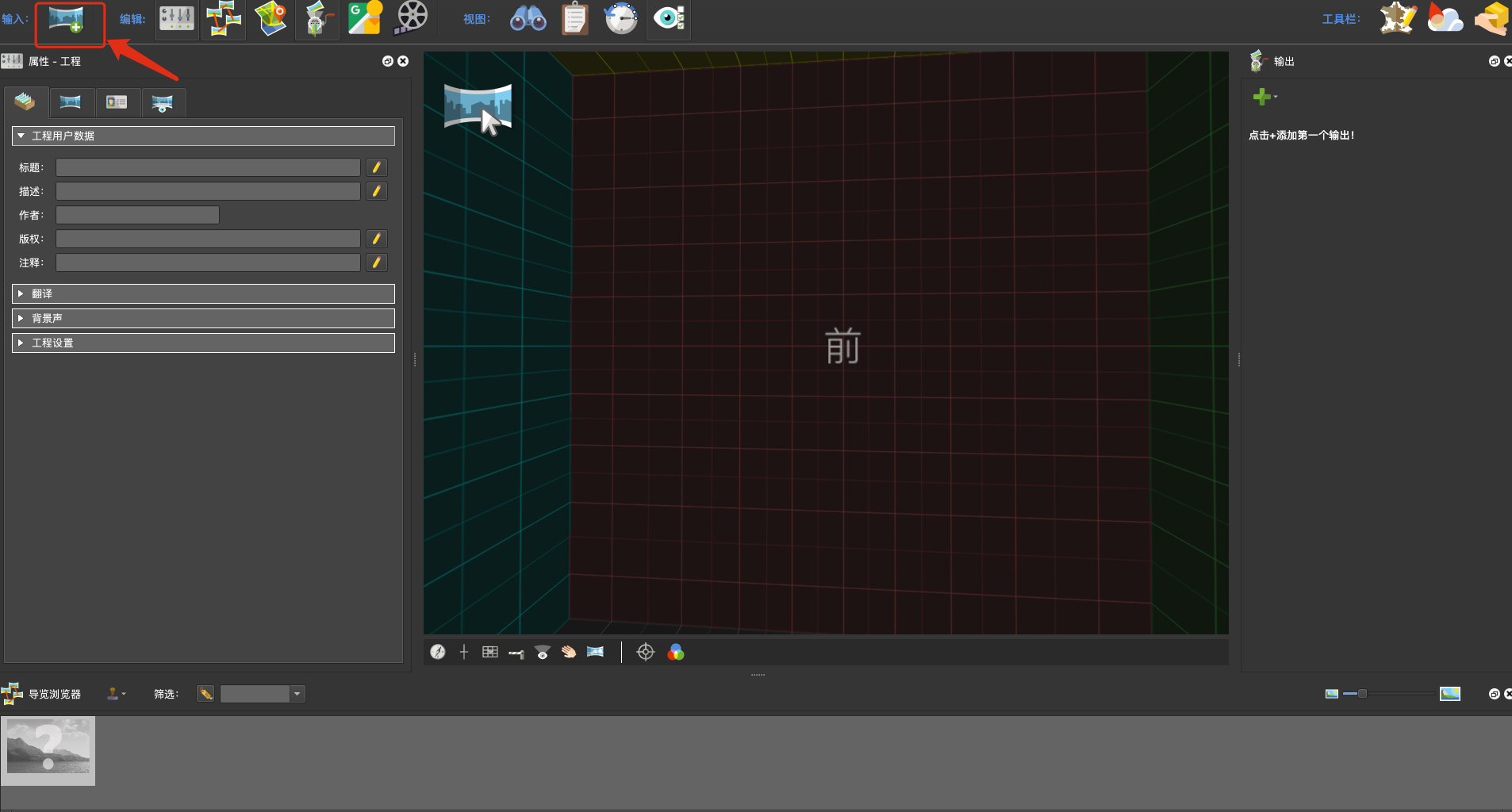 2、点击左上角【输入】,将之前已经拼接好的2:1图片在软件打开